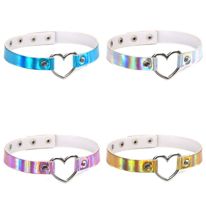 ใหม่เลเซอร์PUหนังChokerผู้หญิงHarajuku Punk Gothicเลเซอร์หนังหัวใจแหวนSpike Rivet Snapปุ่มสร้อยคอคอ