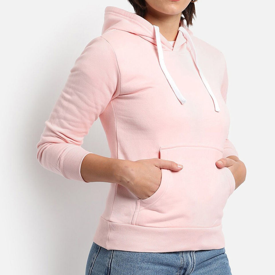 เสื้อฮู้ดแขนยาวลำลองบุผ้าฟลีซ/ผ้าฝ้ายสำหรับผู้หญิง ผลิตตามสั่ง มีกระเป๋า ผ้าระบายอากาศดี MOQ ต่ำ บริการ OEM