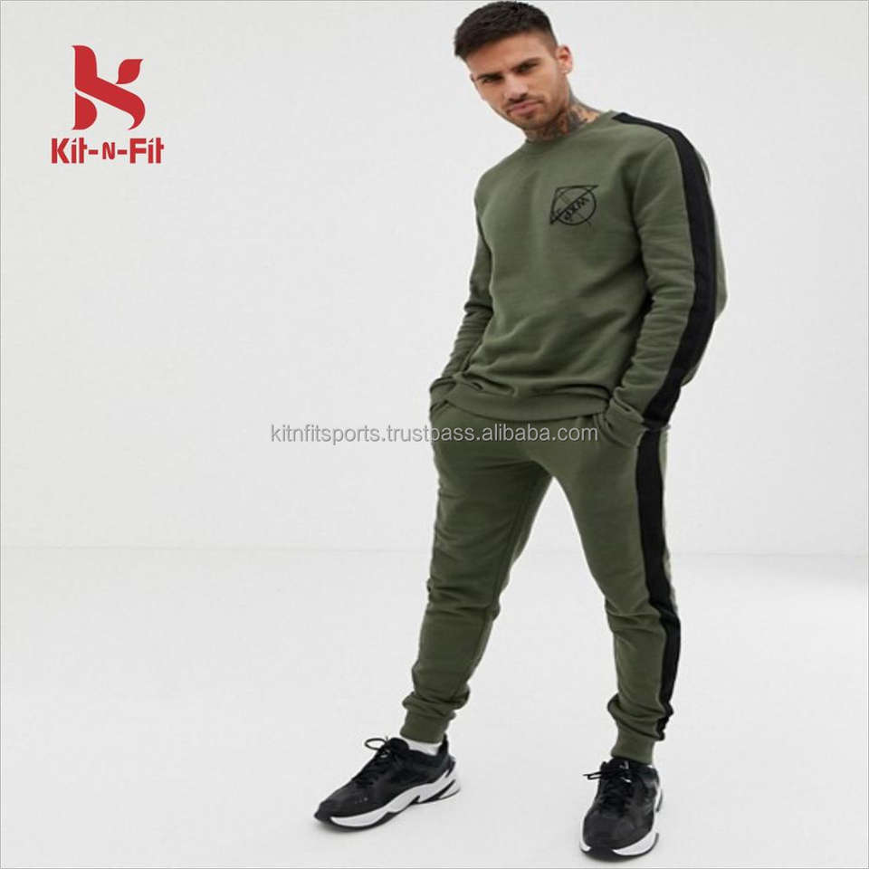 ชุดกีฬาแฟชั่นใหม่ล่าสุดของผู้ชาย,ชุดวอร์มใส่วิ่งเล่นกีฬาสีเขียวมะกอกผ้าฝ้าย100% แนวสตรีทหรูหรา