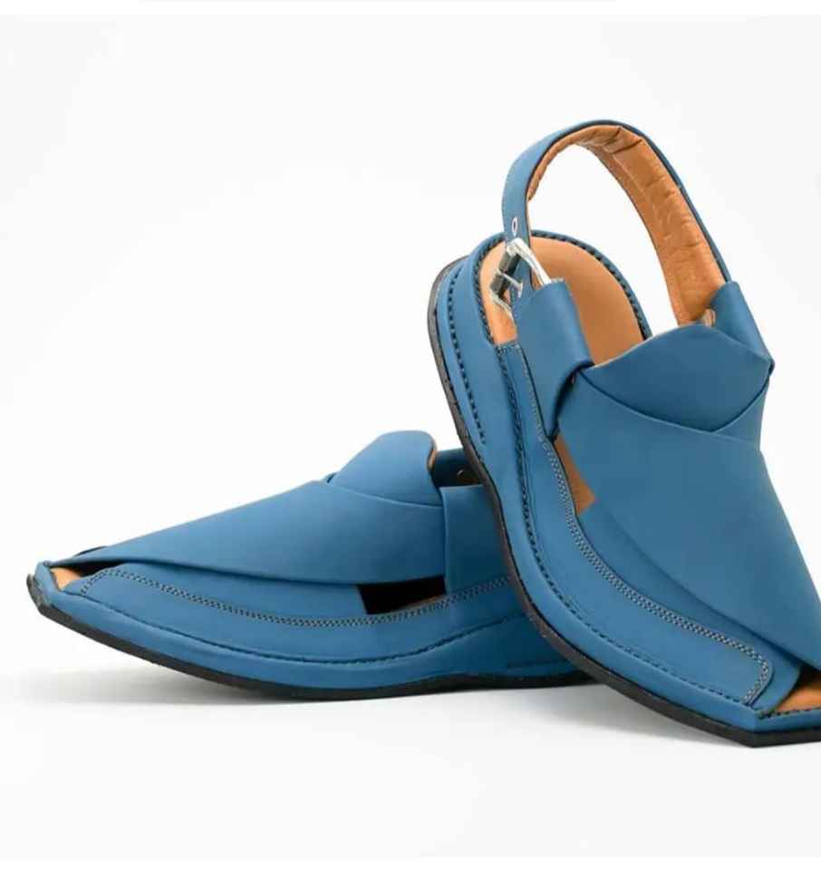 รองเท้าแตะหนังสีฟ้าสำหรับผู้ชายใหม่ล่าสุดทำด้วยมือราคาถูก2025ดีไซน์ตามสั่ง