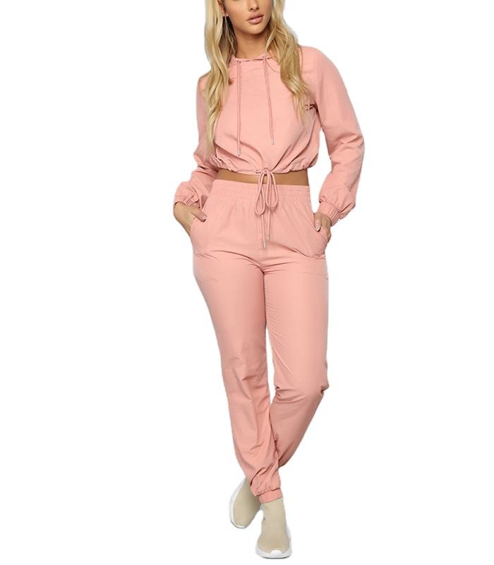 ชุดวอร์ม2ชิ้นสำหรับผู้หญิง,ชุดครอปและวิ่งออกกำลังกายเสื้อสเวตเตอร์มีฮู้ดและโลโก้แบบเฉพาะ