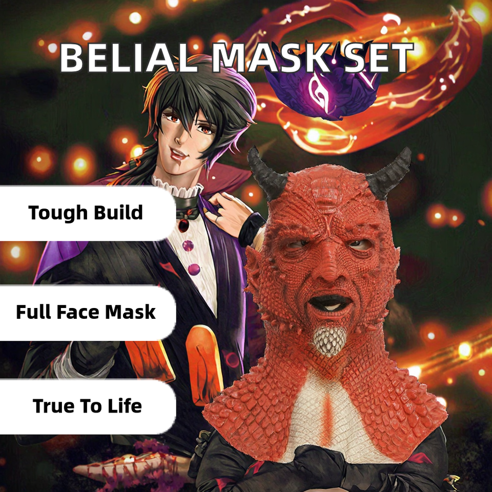 หน้ากากลาเท็กซ์เบียลปีศาจใหม่ ชุดคอสเพลย์หน้ากากปิดหน้าแบบเต็มหน้า พร้อมถุงมือ ชุดสองชิ้น อุปกรณ์ประกอบฉากงานปาร์ตี้ฮาโลวีน