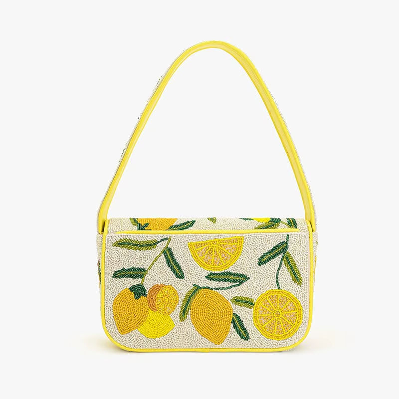 กระเป๋าผ้าปอกระเจาประดับลูกปัดกระเป๋ากระเป๋าถือลำลองแฟชั่นสำหรับผู้หญิง