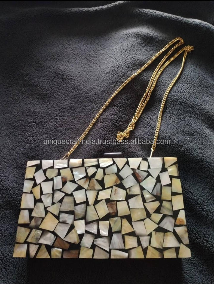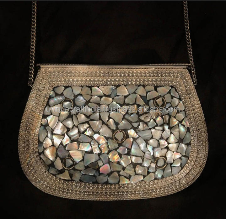 เปิดตัวใหม่: มรดกแห่งการส่องสว่าง | คลัทช์โมเสกที่ทำด้วยมือพร้อมทองเหลืองและการฝังมุก | คอลเลกชัน Royal Boho GLAM