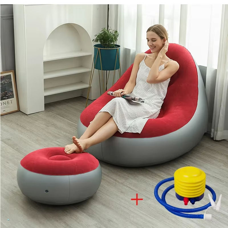 โซฟาสำหรับเด็กขี้เกียจแบบเป่าลมพับได้พร้อมโกลนเก้าอี้โซฟากำมะหยี่ผสมทำจากผ้ากำมะหยี่