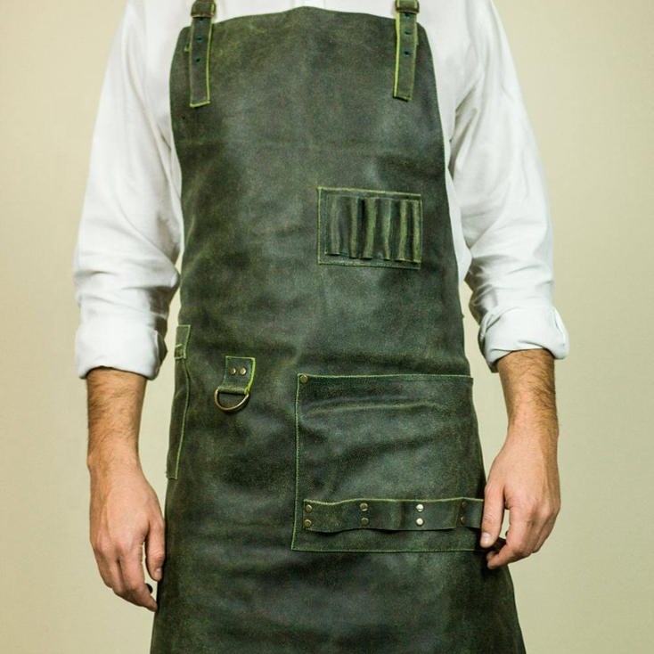 พ่อครัวหนังทำงานใหม่ทำด้วยผ้ากันเปื้อนบาร์เทนเดอร์หนังแท้ LTL-0005