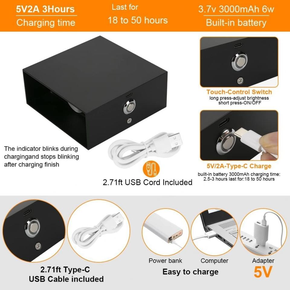 โคมไฟติดผนังแม่เหล็กแบบชาร์จไฟ LED รุ่นใหม่ ปรับความสว่างได้ด้วยระบบสัมผัส ใช้ได้ทั้งภายในห้องนอน ห้องนั่งเล่น บันได และตกแต่ง