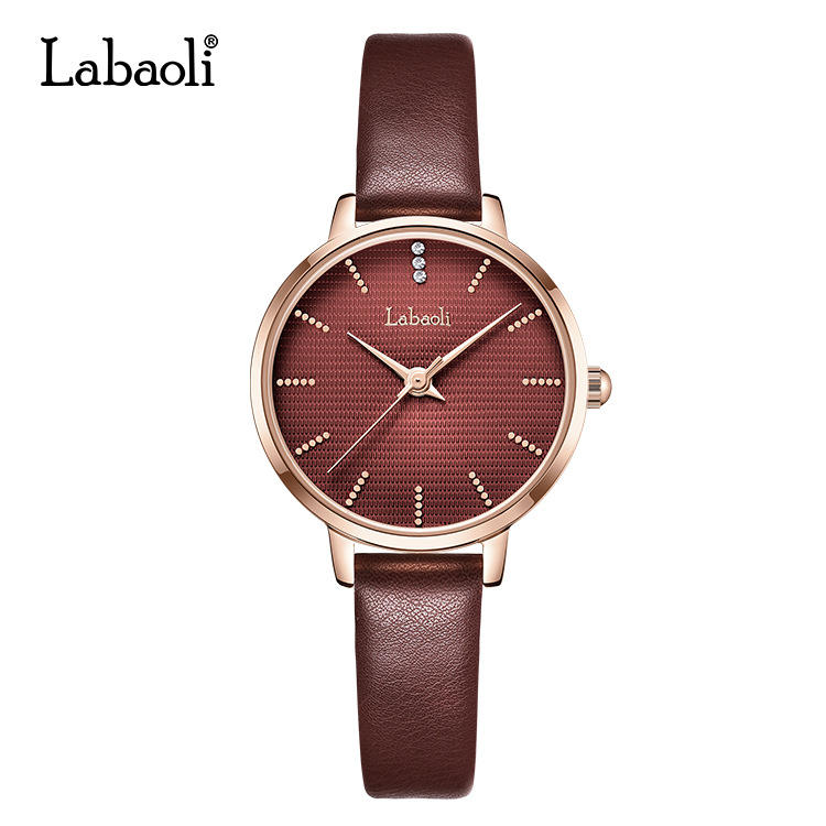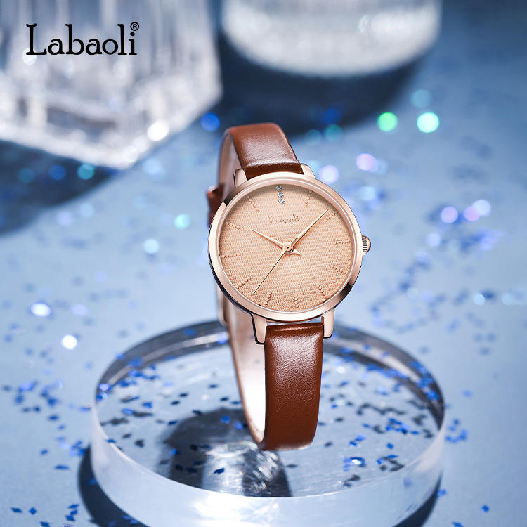 นาฬิกาผู้หญิงหรูหราน้ำหนักเบาใหม่พร้อมสายหนังถักนิตติ้งหน้าปัดทรงกลม