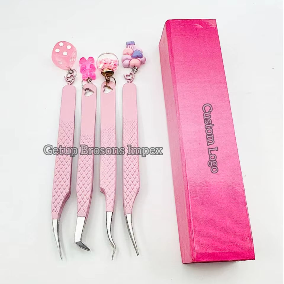 ที่หนีบต่อขนตาเคลือบสีชมพูอ่อนแบบใหม่ หลายสไตล์ พร้อมจี้ตกแต่งหลากหลายแบบ รับทำโลโก้ เครื่องมือเสริมความงาม