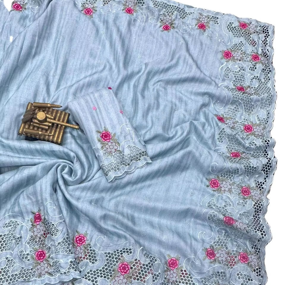 ส่าหรีผ้าฝ้ายทัสซาร์แฟนซีผ้าส่าหรีที่มีน้ำหนักเบาดีไซน์ปักลายไม่ซ้ำใครพร้อมเสื้อนอกจาก surat ช้อปปิ้งออนไลน์