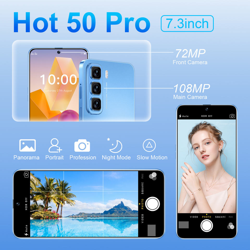 โทรศัพท์มือถือรุ่นใหม่ Hot50 Pro หน้าจอ Incell ระบบ Android ขนาด 7.3 นิ้ว ความจุ 16G 1TB รองรับ 4G LTE CDMA แท้ สำหรับเล่นเกม รุ่น Global