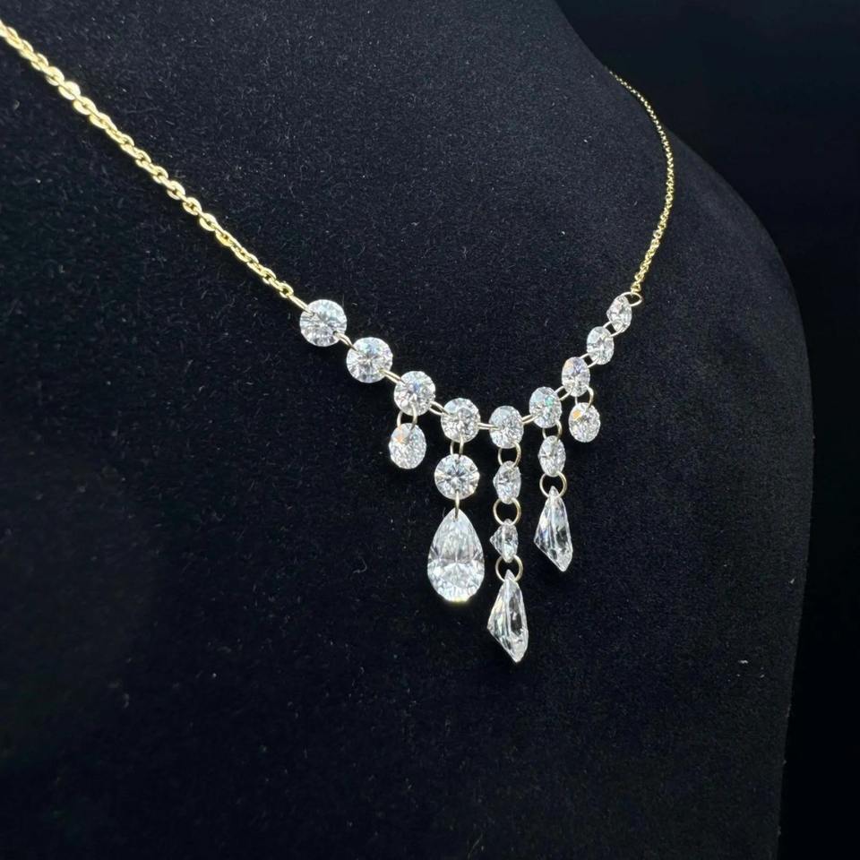 สร้อยคอเพชรแบบใหม่ ดีไซน์หรูหรา สร้อยคอแบบโซ่ยอร์ก งานแฮนด์เมด สำหรับงานแต่งงาน