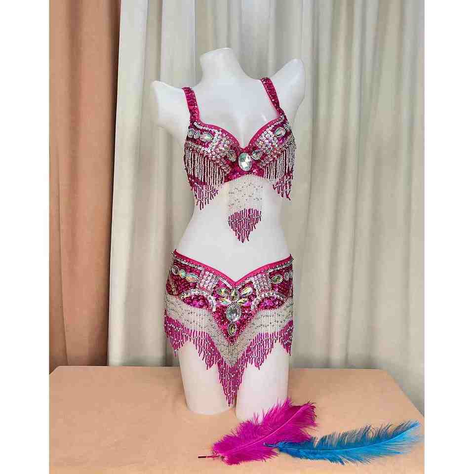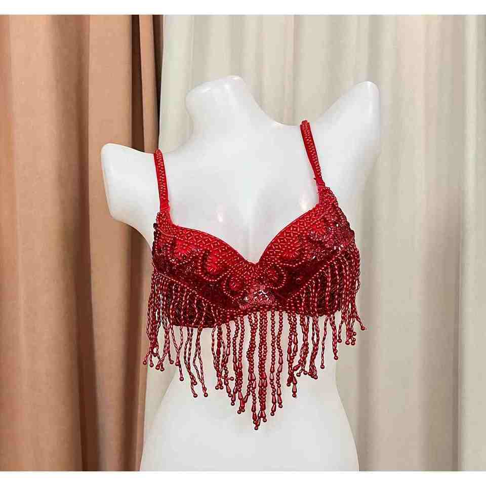 บราสำหรับเต้นระบำหน้าท้องติดลูกปัดขนาดใหญ่สำหรับผู้หญิง