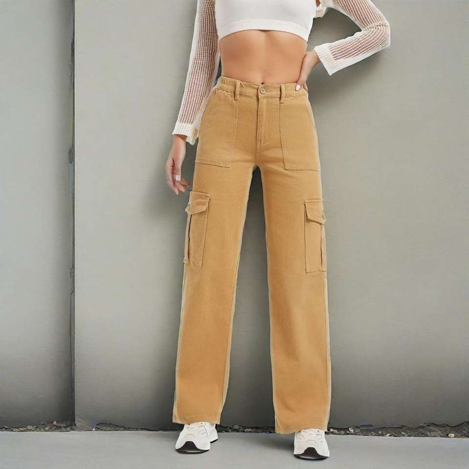 กางเกงยีนส์ทรงตรงเอวสูงสำหรับผู้หญิงสไตล์ลำลองสำหรับฤดูหนาวและฤดูใบไม้ร่วง
