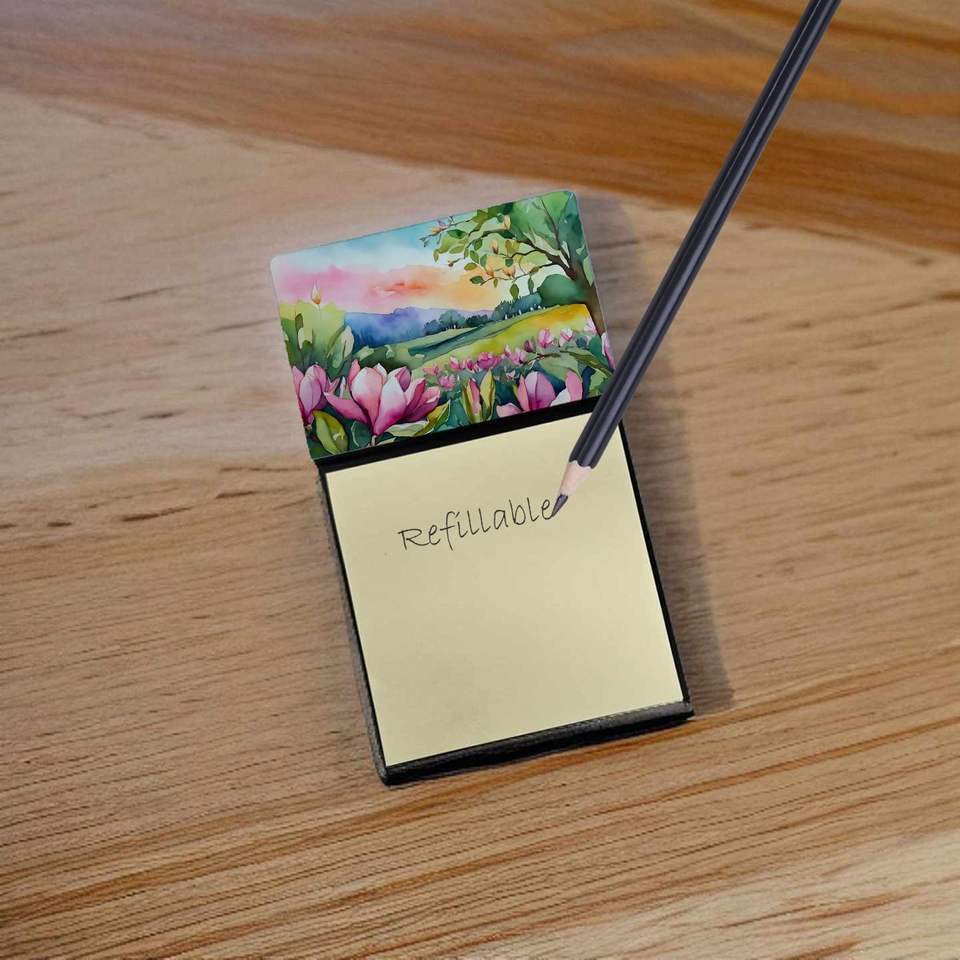 New Louisiana Magnolias Watercolor Self-Sticky Note Pads Dispenser Memo Pads Card Note Holder Accessory for Desks Blank Desk