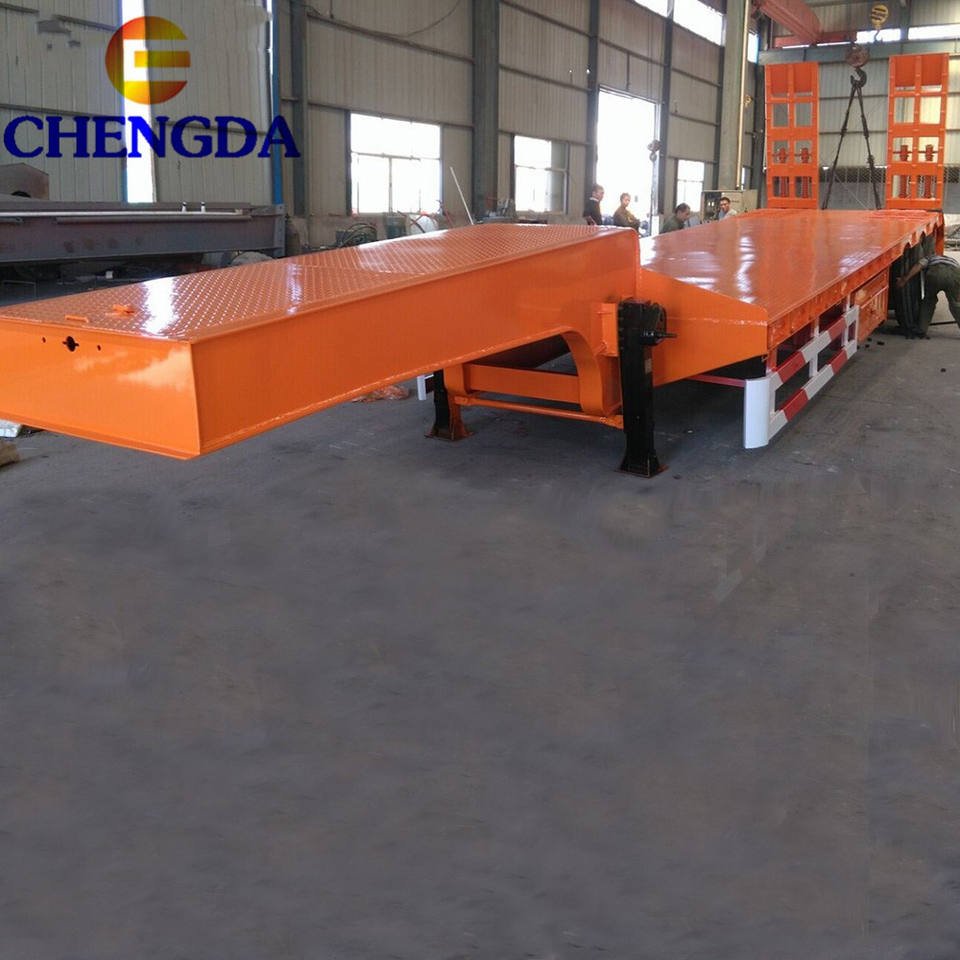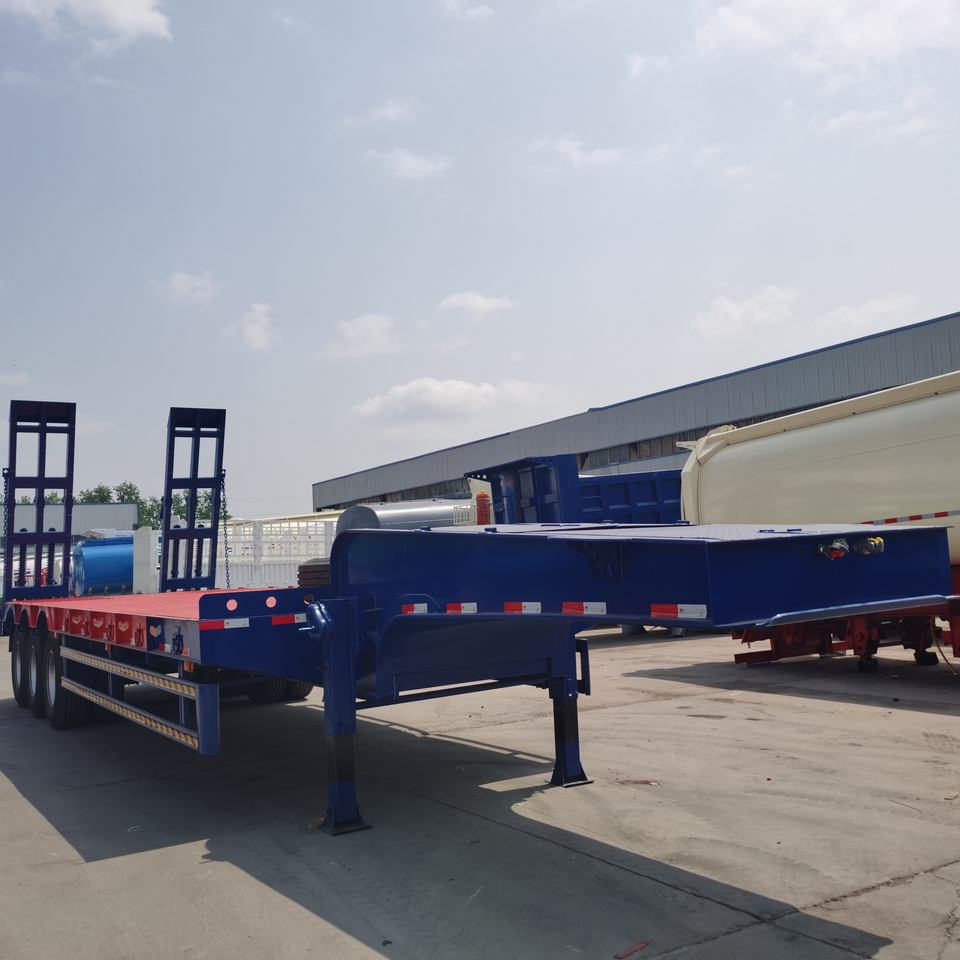 รถพ่วงพื้นเรียบแบบใหม่ สามเพลา 60 ตัน 80 ตัน 100 ตัน รถพ่วงกึ่งพื้นเรียบแบบมีระบบกันสะเทือนแบบลม