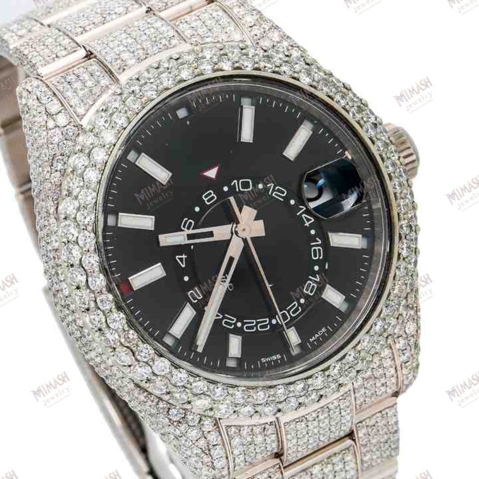 นาฬิกาเพชรมอยส์ซอไนท์สุดหรูหน้าปัดสีดำนาฬิกาแฟชั่นเรืองแสงบอกชั่วโมงเคลื่อนไหวอัตโนมัติแบบแอนะล็อก