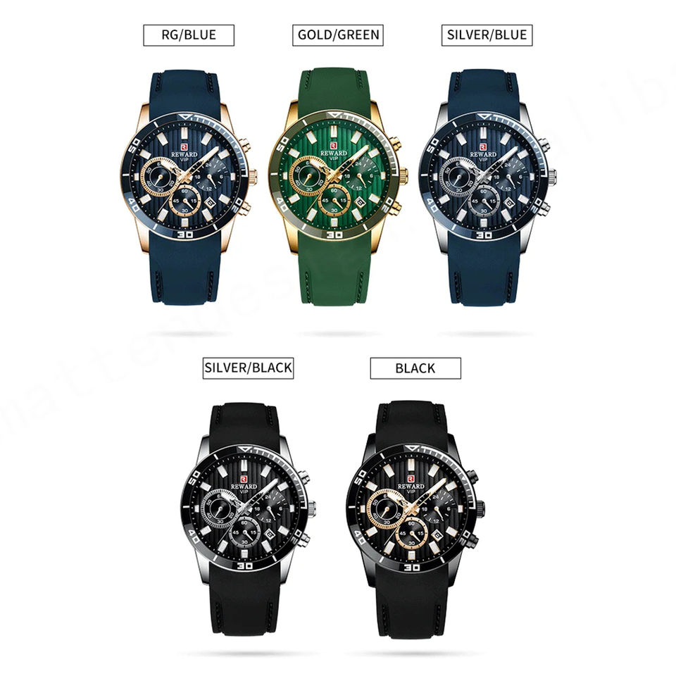 ใหม่หรูหราผู้ชายพลเมือง'นาฬิกาสปอร์ต REWARD สีฟ้ากันน้ำโครโนกราฟควอตซ์นาฬิกาข้อมือแฟชั่นสไตล์สแตนเลส