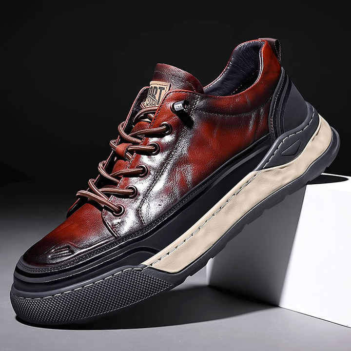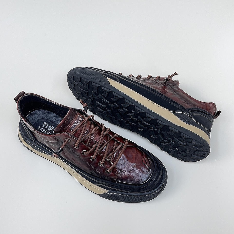 รองเท้าลำลองหนังแท้แบบผูกเชือกทรงหุ้มข้อสูง ระบายอากาศได้ดี ดีไซน์ทันสมัย สีไวน์แดง สไตล์คลาสสิกสำหรับผู้ชาย