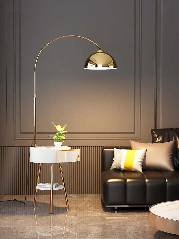 โคมไฟตกปลาสไตล์นอร์ดิกสุดหรูสีทองแดงดำขาว โคมไฟตั้งโต๊ะข้างเตียง โคมไฟตั้งพื้นแนวตั้ง
