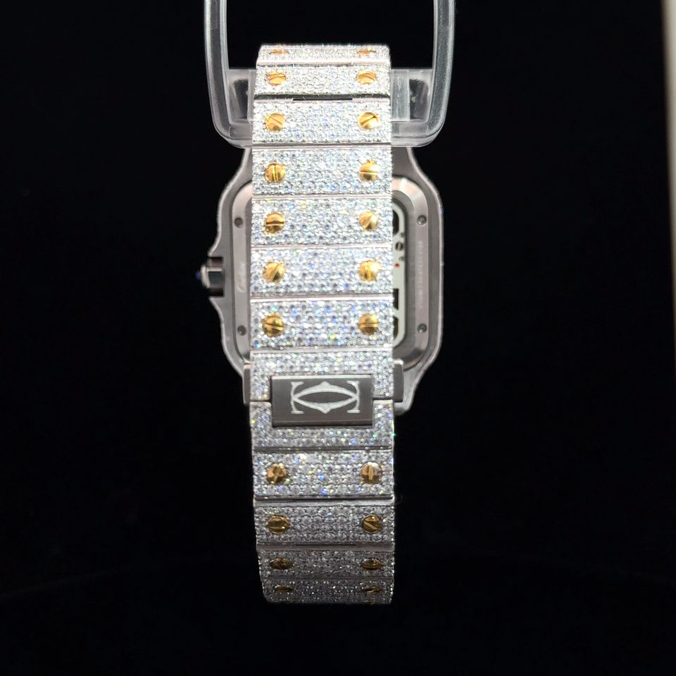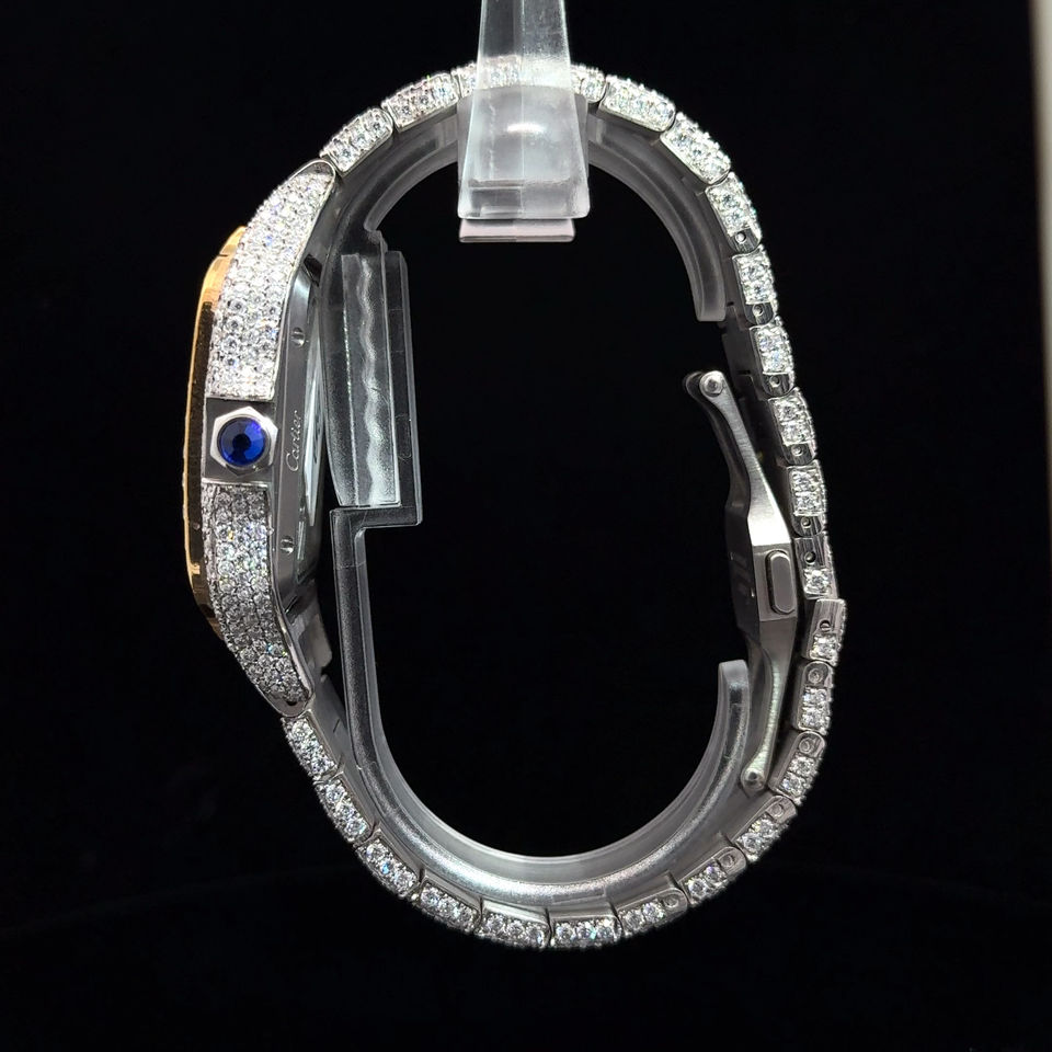 นาฬิกาข้อมือสี่เหลี่ยมหรูหราใหม่ ตัวเรือนเหล็กกล้า ระบบควอตซ์ หน้าปัดโมอิสซาไนต์ระยิบระยับ กระจกสแตนเลสสตีล กันน้ำ 5BAR สำหรับผู้ชาย
