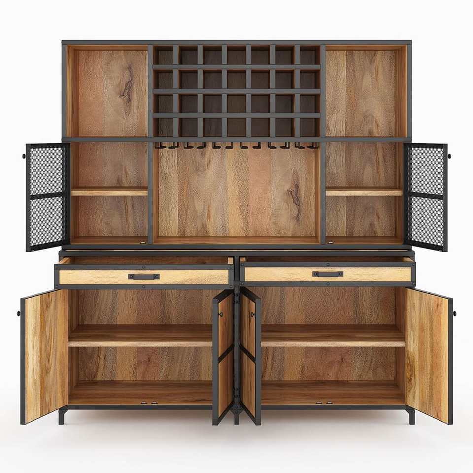 โต๊ะบาร์ไม้มะม่วงแท้แบบขยายได้ พับเก็บได้ สไตล์หรูหราทันสมัย พร้อมตู้เก็บของในห้องอาหาร 4 ช่องเก็บของและลิ้นชัก