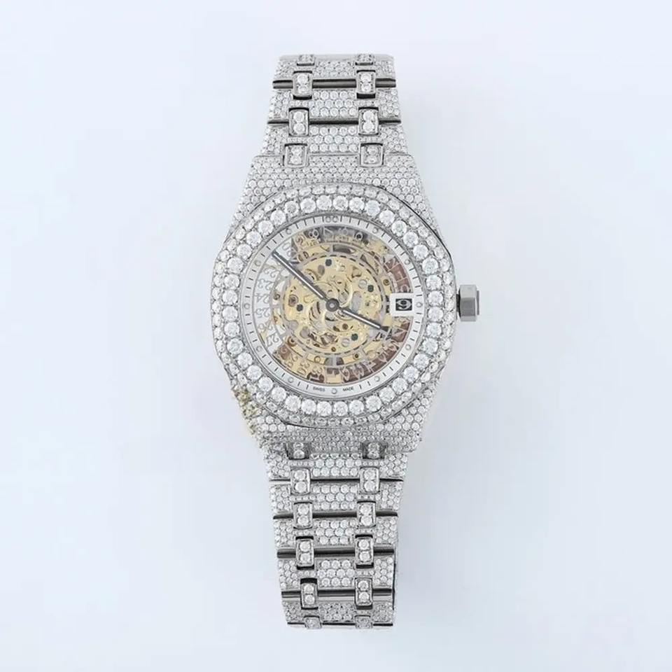 นาฬิกาผู้ชายประดับเพชรทันสมัย VVS Moissanite สุดหรูใหม่