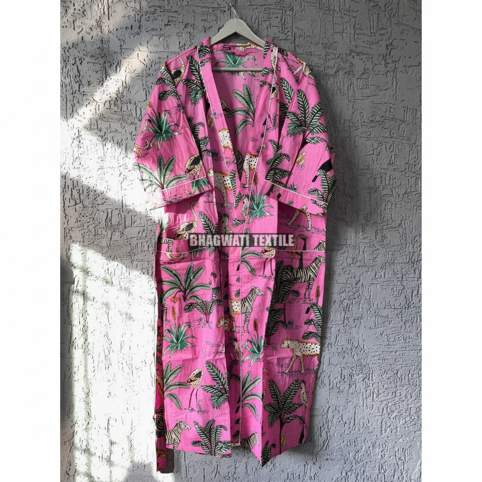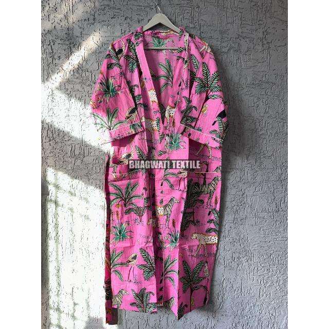 New Luxury Unisex Tiger Print Kimono Robe 100% Cotton Boho Beach Cover Perfect Bridesmaid Gown Gift for Her Women's Sleepwear