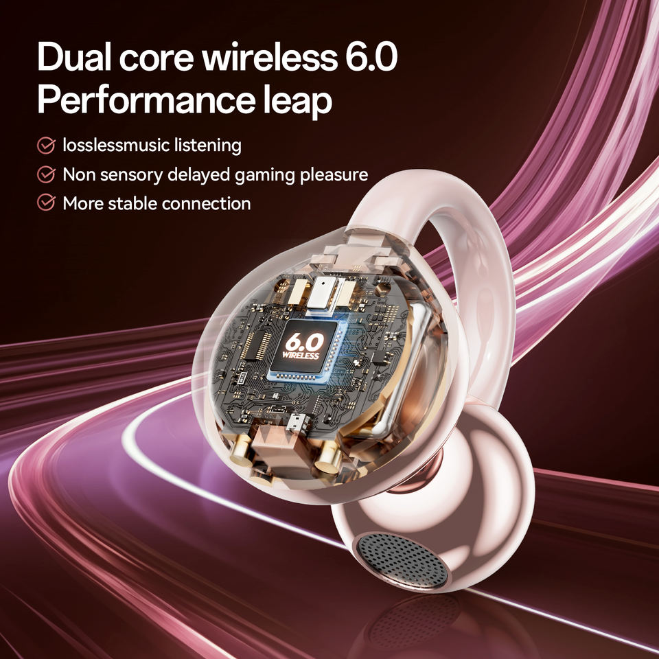 หูฟังไร้สายแบบหนีบหูรุ่นใหม่ M106 สำหรับการเล่นเกมส์และการเดินทางที่มีความหน่วงต่ำ 6.0 รองรับการเล่นเกมส์และกีฬา กันน้ำระดับ IPX7 พร้อมไฟ LED แสดงสถานะ ช่องเสียบแบบ Type-C