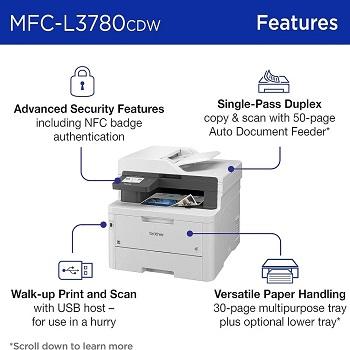 เครื่องพิมพ์เลเซอร์ดิจิตอลออลอินวันสี รุ่นใหม่ MFCL3780CDW + จัดส่งทั่วโลก
