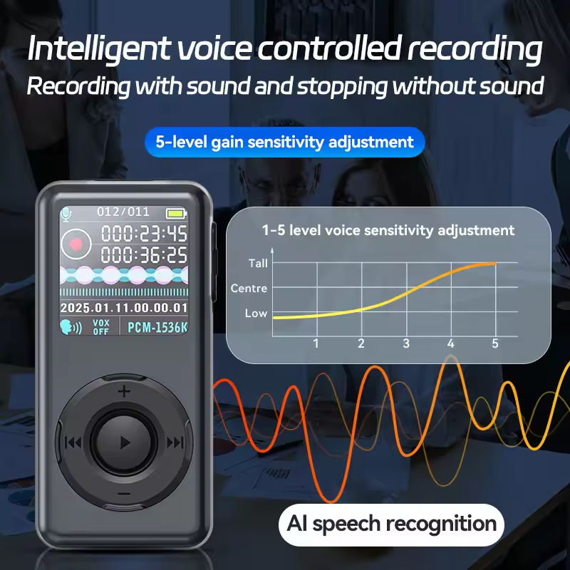 เครื่องบันทึกเสียง MP3อัจฉริยะตัดเสียงรบกวนความละเอียดสูงตัดเสียงรบกวนพร้อมระยะเวลาสแตนด์บายยาวนานใหม่