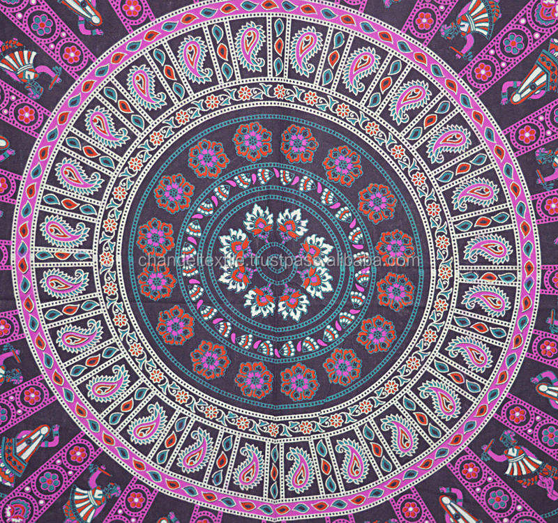 พรมผนังลายแมนดาลาที่แขวนพิมพ์ลายดอกไม้ตกแต่งโบฮีเมียนฮิปปี้ราชินีอินเดียผ้าคลุมเตียงชาติพันธุ์ออบูสันตกแต่งเตียง