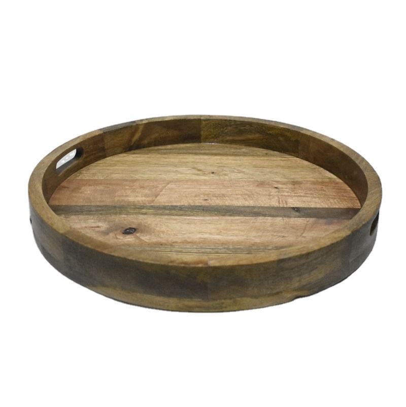 ถาดเสิร์ฟไม้มะม่วงใหม่ถาดตกแต่งรูปทรงกลมสำหรับเสิร์ฟอาหารโรงแรม