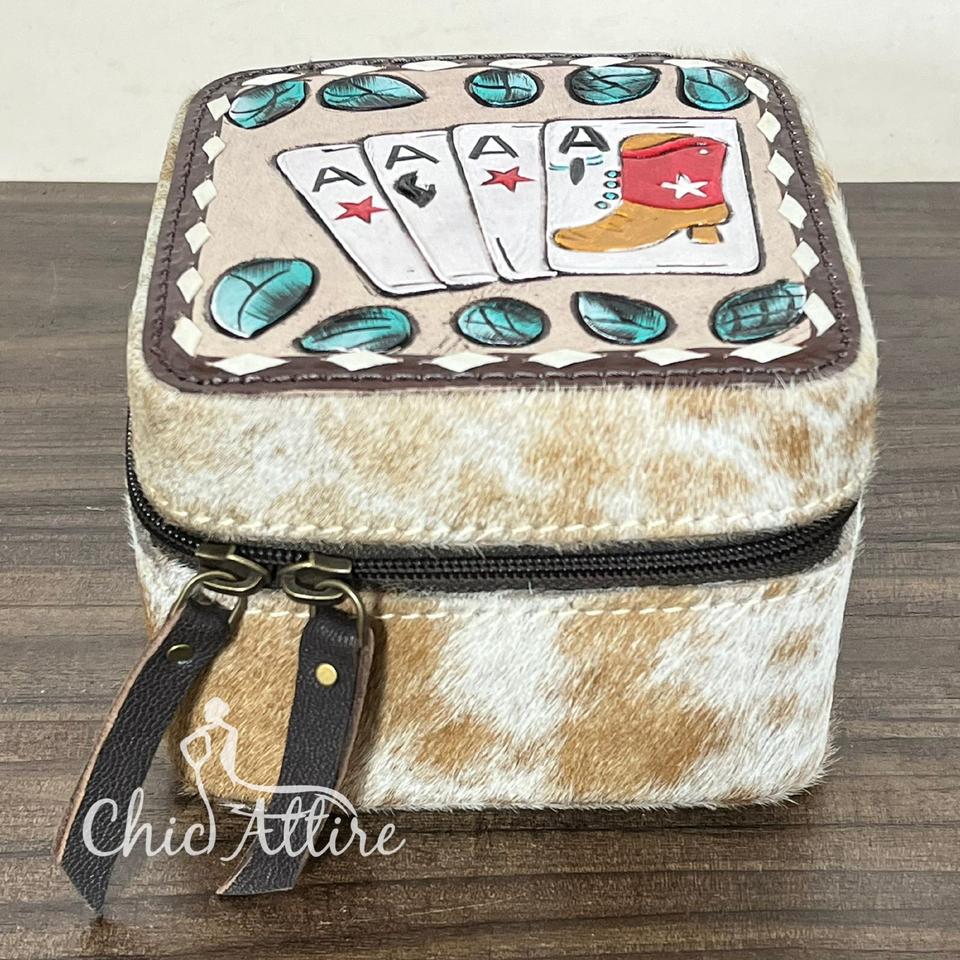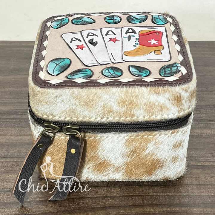 กล่องเก็บเครื่องประดับหนังวัวแท้ ทำสีด้วยมือ
