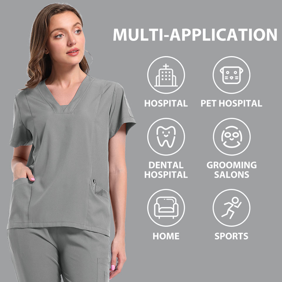 ชุดยูนิฟอร์มผ่าตัดสำหรับผู้หญิงชุดสครับชุดยูนิฟอร์มสำหรับผู้หญิงชุดสครับทางคลินิกกางเกงกระเป๋าสำหรับสัตวแพทย์ชุดพยาบาล