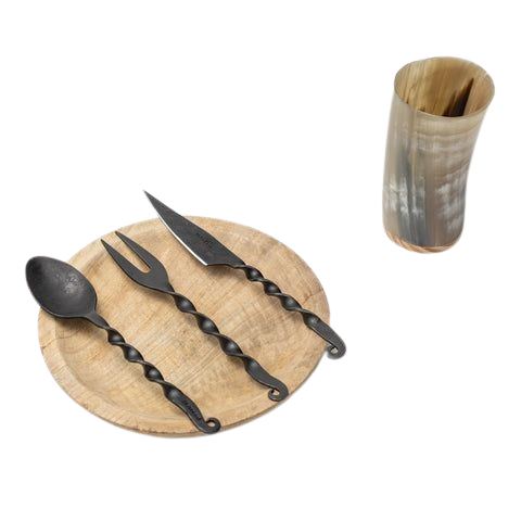 ชุดเครื่องใช้บนโต๊ะอาหารยุคกลางใหม่ชุดเครื่องใช้บนโต๊ะอาหารโลหะช้อนและส้อมรูปทรงใหม่สำหรับใช้ทำอาหาร