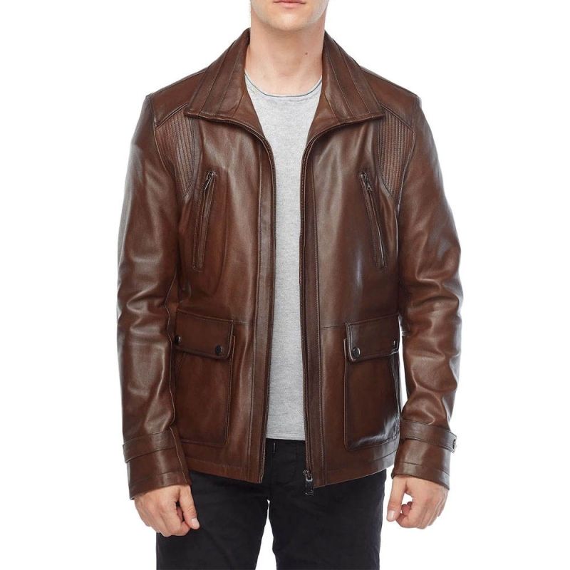 เสื้อแจ็คเก็ตหนังสีดำสำหรับผู้ชายแบบใหม่ คอตั้ง กันลม ระบายอากาศได้ดี เป็นมิตรกับสิ่งแวดล้อม ทรงเข้ารูป ดีไซน์วินเทจ