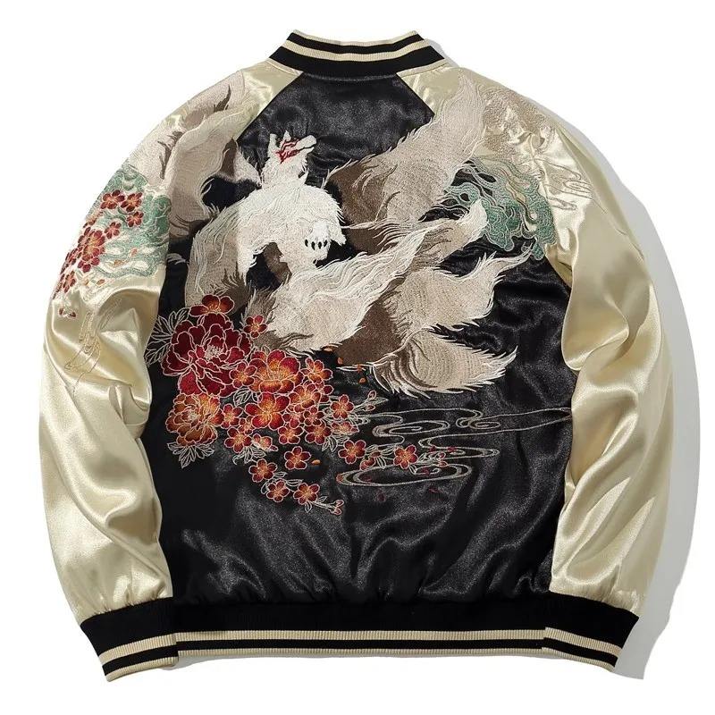 ใหม่ผ้าแคนวาสสุดคาจานไฮสตรีทของเด็กผู้ชายผ้าใบกันน้ำระบายได้ดีลายดอกจิ้งจอกเก้าหางปักดอกโบตั๋นนักบินบอมเบอร์เลตเทอร์แมน