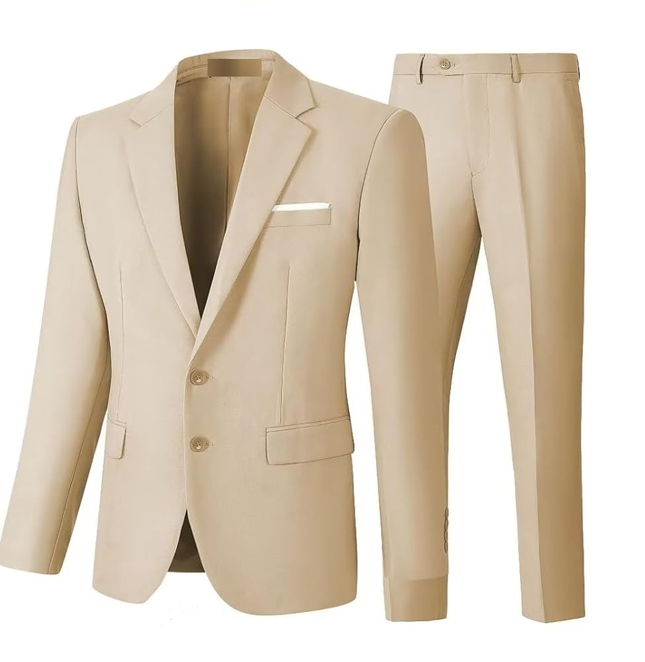 ชุดสูทธุรกิจผู้ชายแบบกระดุมสองแถว ชุดทักซิโด้เจ้าบ่าว ปกแบบเว้า จับจีบ ระบายอากาศได้ดี ผ้ากันไฟฟ้าสถิตย์ ผ้าวอร์สเตด โพลีเอสเตอร์ 100%