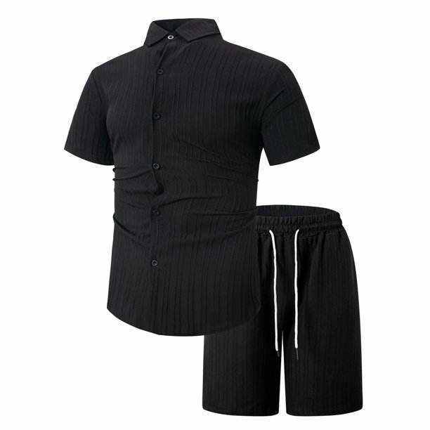 ชุดเซ็ตเสื้อยืดแขนสั้นและกางเกงขาสั้นลำลองสำหรับผู้ชาย รุ่นใหม่ ใส่สบายในฤดูร้อน ชุดลำลองแบบสวมใส่ได้ทุกวัน 2 ชิ้น เสื้อโปโลติดกระดุมเต็มตัว สามารถปรับแต่งได้