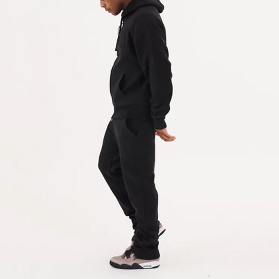 ชุดเซ็ตฮู้ดดี้ลำลองผู้ชาย 2 ชิ้น ผ้าโพลีเอสเตอร์/คอตตอนผสม คุณภาพพรีเมียม ระบายอากาศ กันลม แห้งเร็ว ชุดวอร์มสีพื้น