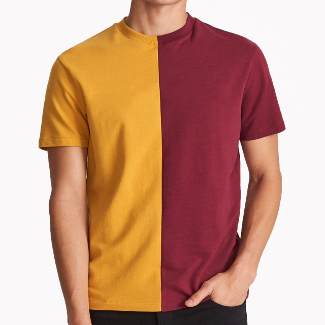 เสื้อยืดผู้ชายบล็อกสีลำลองใหม่เสื้อผ้าแฟชั่น