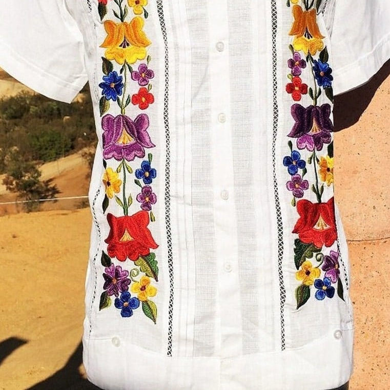 New Men Guayabra Short Sleeve Embroidered Shirt Men Maxican Traditional Shirt Floral Embroidered Guayabera for Men Formal Shirt