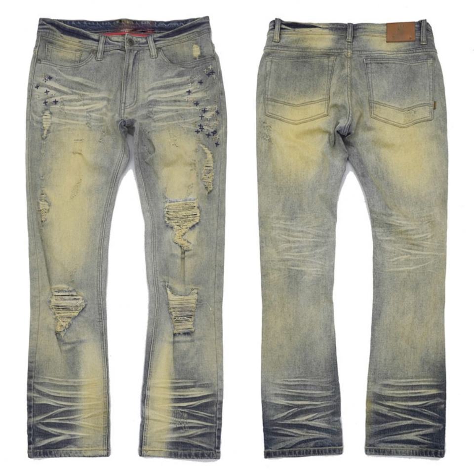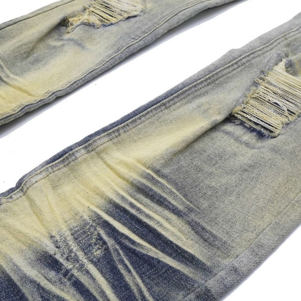 กางเกงยีนส์ผู้ชายแบบใหม่ ดีไซน์เย็บมือ แต่งลายหนวดแมว ลุคขาดๆ ซักแบบดิสเทรส สำหรับหนุ่มๆ