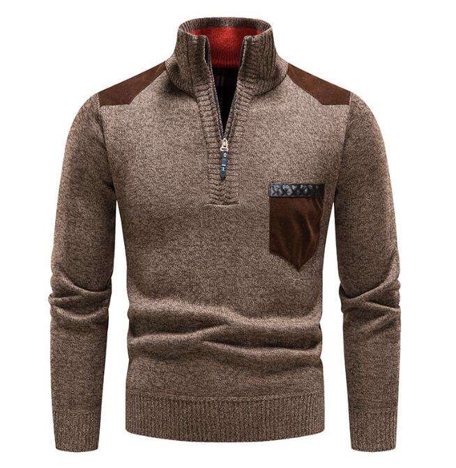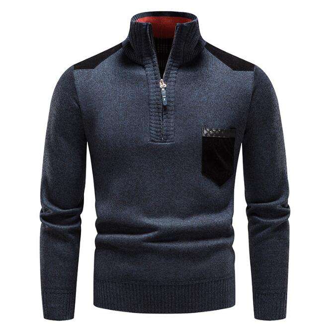 เสื้อสเวตเตอร์ถักไหมพรมผู้ชายแบบใหม่ สำหรับฤดูใบไม้ร่วงและฤดูหนาว แขนยาว คอเต่า ซิป แบบสวมหัว เสื้อคลุม