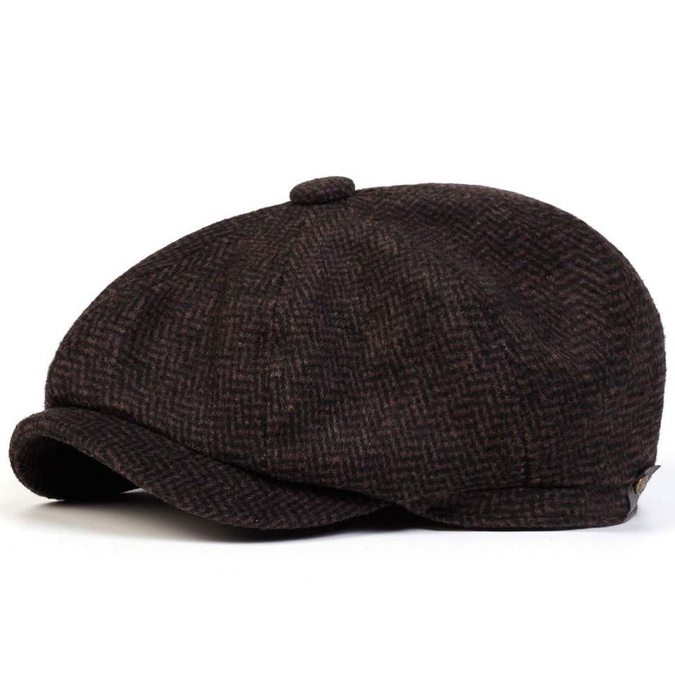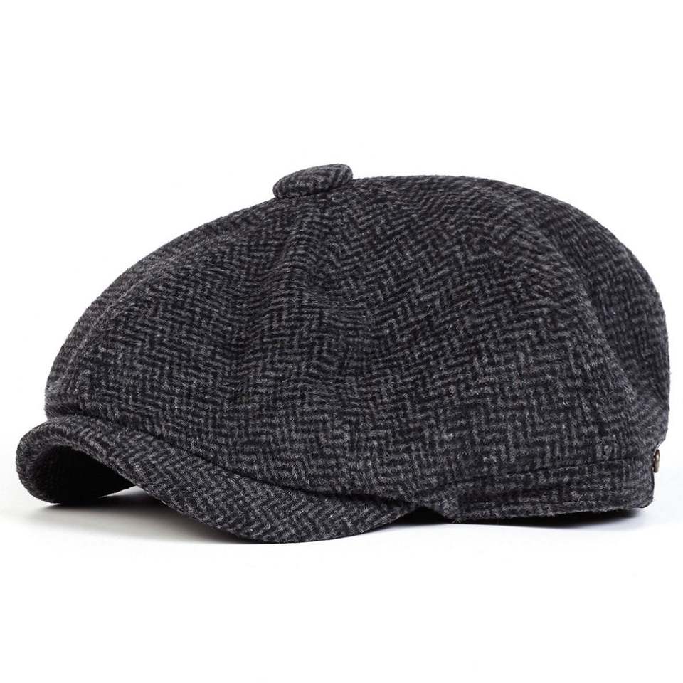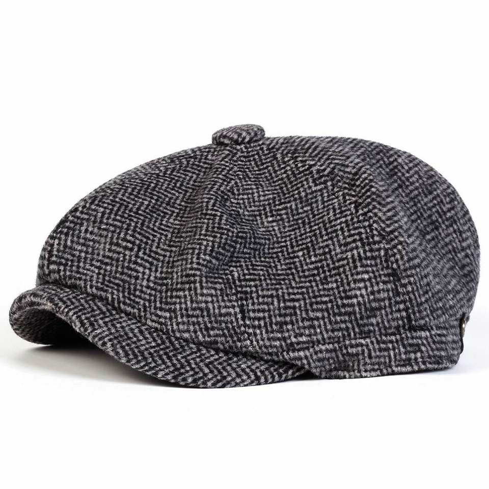 หมวกทรงนิวส์บอยสำหรับผู้ชายวัยกลางคนและผู้สูงอายุ สไตล์อังกฤษ อุ่นหนา เหมาะสำหรับฤดูใบไม้ร่วงและฤดูหนาว ผ้าทวีดย้อนยุค ทรงเบเร่ต์ 8 แผ่น