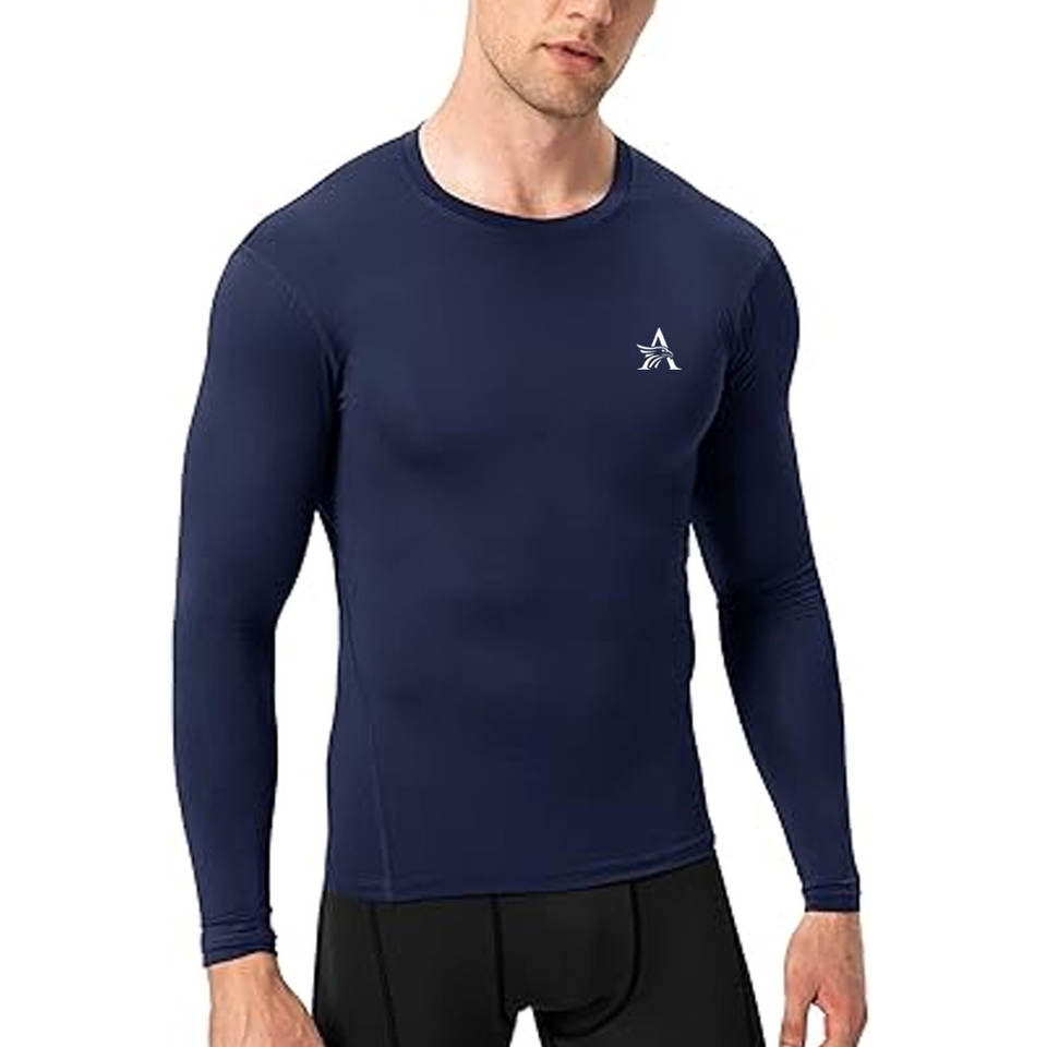เสื้อแรชการ์ดแขนยาวสำหรับผู้ชาย สำหรับว่ายน้ำ โต้คลื่น ออกกำลังกายในยิม ผ้าแห้งเร็ว ยืดหยุ่น