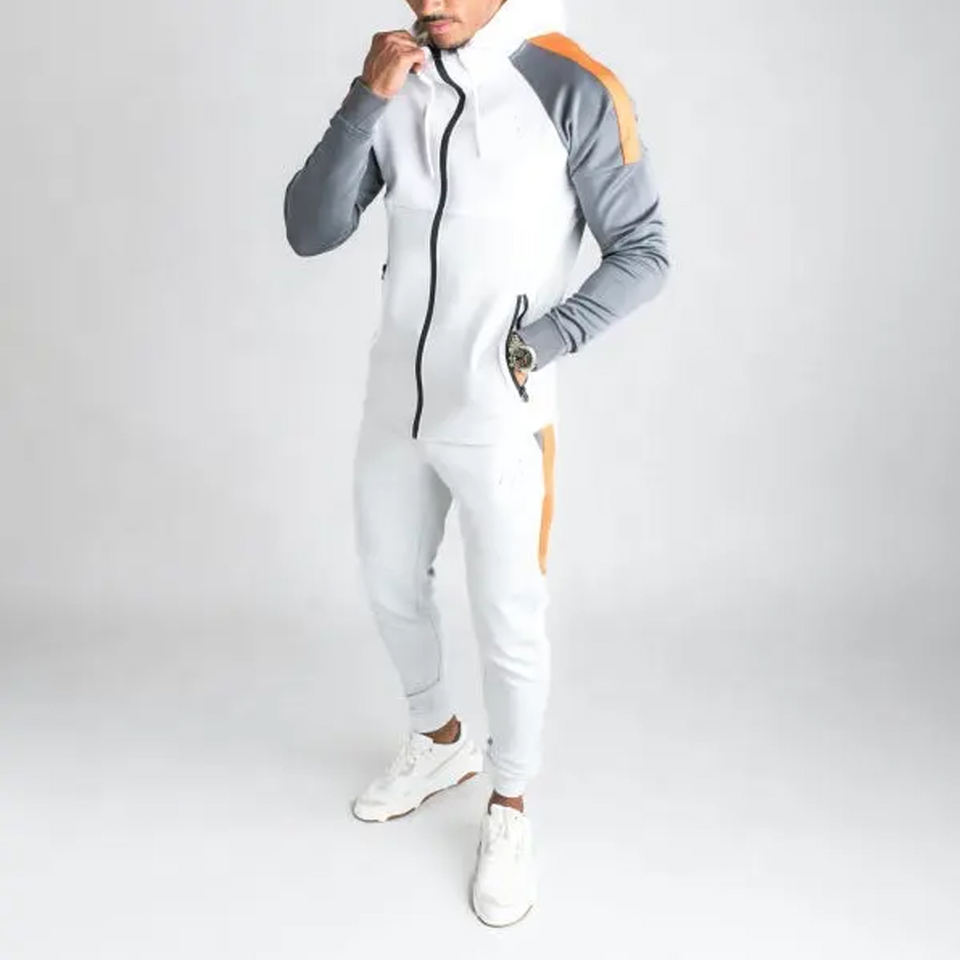 ชุดกีฬา2ชิ้นสำหรับผู้ชายชุดวอร์มลำลองแบบมีซิปรูด