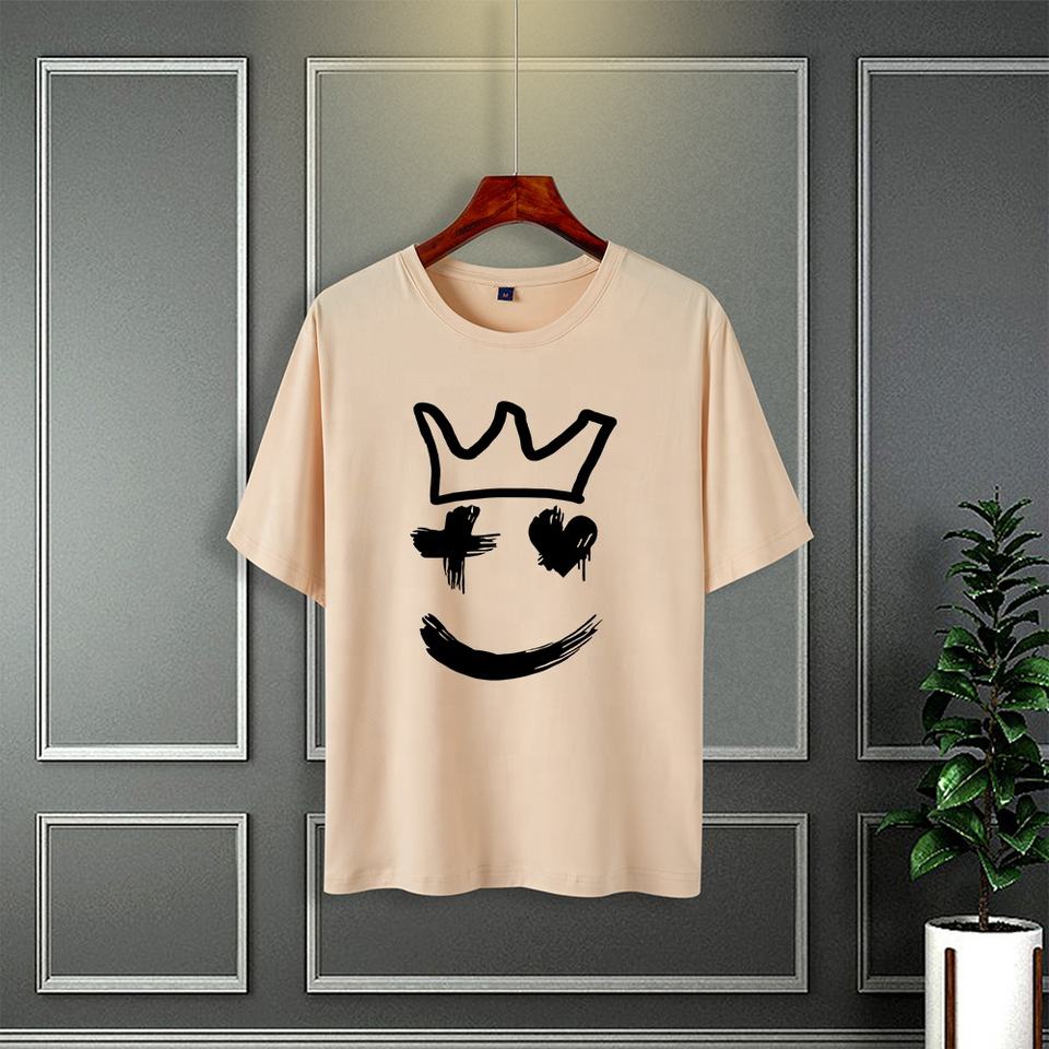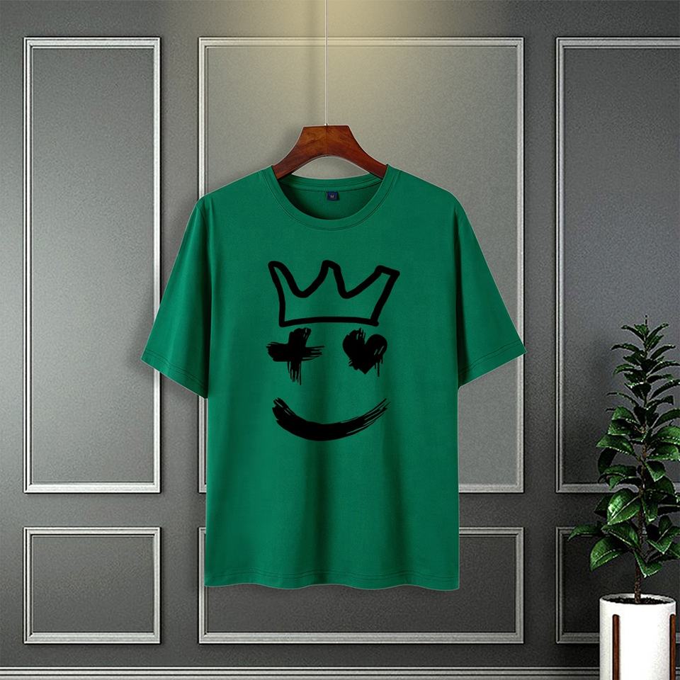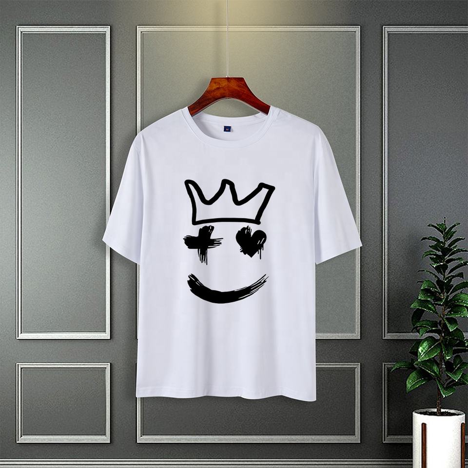 New Men's 100% Polyester 180g Knit Loose Oversized Crew Neck T-Shirt Vintage Style Digital Print Characters Short Fitted