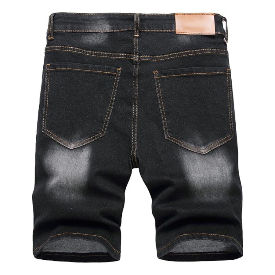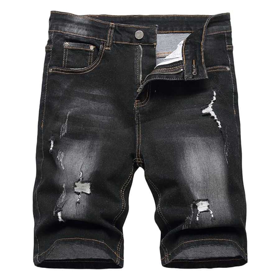 กางเกงยีนส์สีดำของผู้ชายใหม่กางเกงขาสั้นสีดำกางเกงยีนส์ผ้าฝ้าย100% ดีไซน์มีลาย